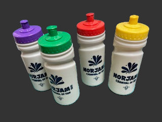 A reasonably priced plastic waterbottle with the NORJAM 2025 logo this comes in 4 different colours. Ideal for a small gift or to use as a prize